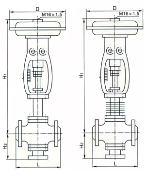 ZMAQ(X)型氣動(dòng)薄膜三通調(diào)節(jié)閥有合流和分流兩種作用方式。閥芯結(jié)構(gòu)采用圓筒薄壁窗口,并采用閥芯側(cè)面導(dǎo)向。三通閥在某些場合可以替代兩個(gè)二通和一個(gè)三通閥在某些場合可以替代兩個(gè)二通和一個(gè)三通接管而得到廣泛應(yīng)用,常用于熱交換器的兩相調(diào)節(jié),也可用于簡單的配比調(diào)節(jié)。