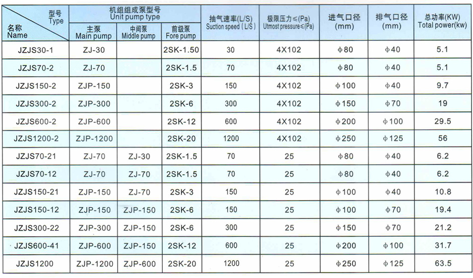 JZJS型系列真空機組以水環(huán)泵作為前級泵,該機組性能特別適應(yīng)于抽除含有大量的水蒸汽帶有一定腐蝕性和可凝性氣體的工藝流程,該機組質(zhì)量可靠、性能穩(wěn)定、已裝配電控制系統(tǒng),旁路管、益流閥,技術(shù)參數(shù)為4x102與10,該機組適用于真空蒸溜、濃溜、脫水結(jié)晶、干燥以及電力容器、變壓器制造等單位使用。
