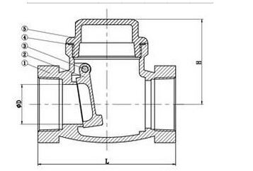 H14W-16P不銹鋼絲口臥式止回閥結(jié)構(gòu)圖: